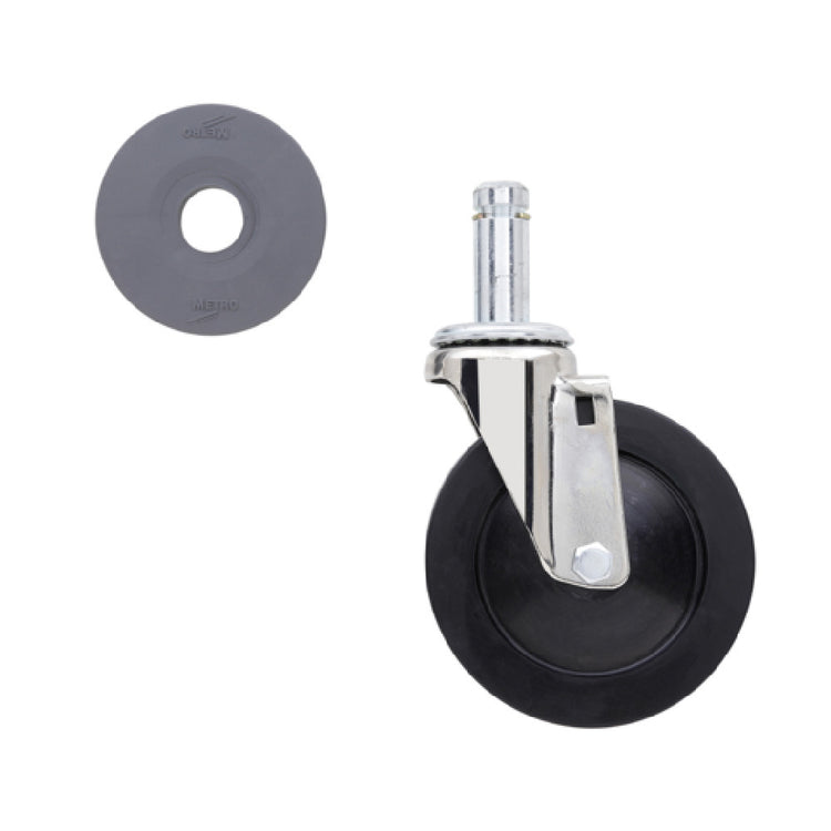 The Metro 5MC Caster 5" Swivel is a versatile component designed for a wide range of industrial and commercial applications, offering unparalleled mobility and functionality. With its 5-inch diameter, this swivel caster enables smooth and efficient movement, suitable for environments that require frequent repositioning and adjustments. The design of the 5MC caster emphasizes reliability, ensuring that equipment can be maneuvered with minimal effort, enhancing operational efficiency. This product is particularly valuable in sectors such as healthcare, manufacturing, and logistics, where ease of movement is crucial. The swivel mechanism of the Metro 5MC allows for 360-degree rotation, facilitating precise navigation in confined spaces. This caster is constructed to handle various load capacities, providing robust support without compromising on maneuverability. Its compatibility with a range of equipment makes it an essential component for industries seeking to optimize their workflows through improved mobility solutions. Whether used in carts, racks, or other mobile units, the Metro 5MC Caster 5" Swivel represents a critical addition to any operation demanding dependable and flexible movement capabilities.