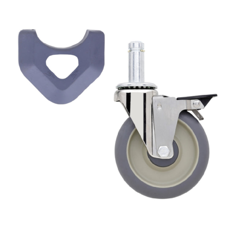 The Metro 5MDBXA Quick Ship Stem Caster Brake 5" Dia. is a highly specialized component designed for versatile use within various industry segments, particularly those requiring efficient and reliable mobility solutions. This stem caster features a 5-inch diameter and a 1-1/4 inch wide face, offering a robust and stable platform for movement. Engineered with a high modulus donut wheel tread, it ensures smooth transportation and durability under constant use. With a load capacity of 250 pounds, this caster is suitable for heavy-duty applications, providing strength and dependability. The inclusion of donut bumpers enhances product protection and operational safety. Certified by NSF, this caster meets rigorous public health and safety standards, making it an ideal choice for environments such as food service and healthcare facilities. Compatible with all MetroMax posts and shelves, the 5MDBXA stem caster offers seamless integration into existing systems, enhancing operational flexibility and efficiency. The quick-ship availability underscores its readiness for immediate deployment, addressing urgent needs for mobility solutions. This product exemplifies a blend of practicality and precision engineering, catering to the nuanced demands of various industries.