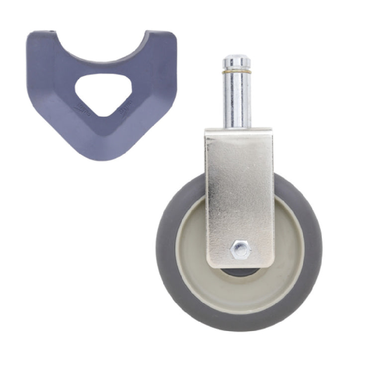 The Metro 5MDRXA Stem Caster Rigid 5" Dia. is a specialized component designed to enhance the mobility and functionality of MetroMax shelving systems. Featuring a 5-inch diameter wheel with a 1-1/4" width face, this caster is engineered with a flat polyurethane tread, providing smooth and durable movement across various surfaces. Its robust construction supports a weight capacity of up to 250 pounds, making it suitable for heavy-duty applications in industrial and commercial environments. The rigid design ensures stability and strength, crucial for maintaining the integrity of static shelving units. Included donut bumpers add an extra layer of protection, preventing damage to walls and surrounding equipment during movement. The 5MDRXA caster is NSF listed, certifying its compliance with strict public health and safety standards. This makes it an ideal choice for food service operations, healthcare facilities, and other environments where sanitation is paramount. Compatible with all MetroMax posts and shelves, it offers a versatile solution for industries seeking reliable and efficient mobility options. Whether used in logistics, retail, or storage, the Metro 5MDRXA Stem Caster brings a blend of durability, safety, and performance, tailored to meet the diverse needs of professionals across various sectors.