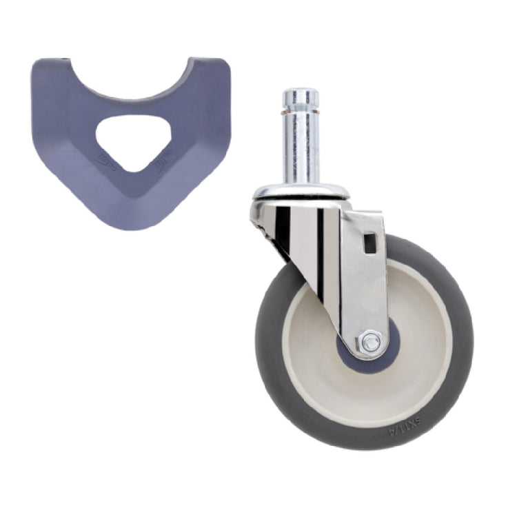 The Metro 5MPX Quick Ship Stem Caster Swivel 5" Dia. is a high-performance caster designed for versatile applications, notably enhancing the mobility of MetroMax posts and shelves. This caster boasts a 5-inch diameter wheel with a 1-1/4-inch wide face, optimizing both stability and maneuverability. Featuring a high modulus donut wheel tread, it ensures smooth and durable operation across various surfaces, making it suitable for different industrial sectors requiring reliable transport solutions. The caster supports a substantial weight capacity of 300 pounds, meeting the demands of heavy-duty usage. It includes donut bumpers, which provide additional protection to both the caster and surrounding environments during transit. Furthermore, the caster is NSF certified, confirming its adherence to high standards of public health and safety. The Metro 5MPX caster serves as an indispensable component for businesses seeking to improve their equipment's mobility, particularly within sectors such as retail, hospitality, and healthcare, where efficient and safe movement of shelving units is crucial. Its quick-ship feature also ensures minimal downtime, providing an efficient and effective solution for immediate needs.