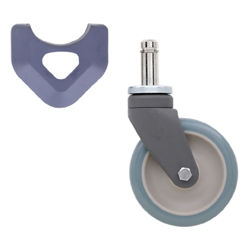 The Metro 5PCXM Quick Ship Polymer Stem Caster Swivel 5" Dia. is a versatile component designed for seamless mobility across various environments. Specifically engineered for use with all MetroMax posts and shelves, this caster incorporates a 5-inch diameter wheel with a 1-1/4-inch wide face, providing stability and ease of movement. The polyurethane wheel tread enhances durability while supporting a substantial load capacity of 300 pounds, making it suitable for both commercial and industrial applications. Operating efficiently within a temperature range of -20°F to 120°F, this caster is adaptable to a wide array of settings. The inclusion of Microban® antimicrobial product protection underscores its commitment to sanitation and hygiene, a crucial aspect for sectors that prioritize cleanliness. Certified by NSF, the caster adheres to stringent health and safety standards, adding another layer of reliability in environments where such compliance is imperative. Additional features, like the donut bumpers, further protect against accidental damage during movement. Overall, the Metro 5PCXM offers a compelling blend of resilience, flexibility, and compliance, catering to industries ranging from food service to healthcare, where mobility and hygiene are essential.