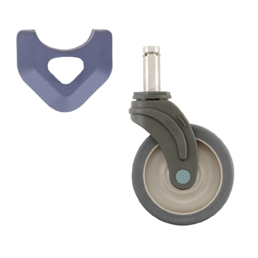 The Metro 5PSTEX MetroMax® Total-Guard Stem Caster Swivel is engineered for durability and efficiency, featuring a 5-inch diameter and a 1-1/4-inch wide face. This robust caster has a remarkable load capacity of 250 pounds, making it suitable for a variety of industrial applications. Constructed with a combination of high-quality polymer and stainless steel, this caster promises longevity and resistance to environmental factors. Its moisture-resistant thermoplastic elastomer (TPE) tread ensures smooth movement and minimizes wear over time, even in challenging conditions. The inclusion of a bumper enhances its protective capabilities, safeguarding both the caster and surrounding equipment during use. Certified by the National Sanitation Foundation (NSF), it meets rigorous standards for safety and quality. The swivel feature adds to its versatility, providing ease of navigation in dynamic workspaces. The Metro 5PSTEX MetroMax® Total-Guard Stem Caster is a reliable component for sectors demanding robust transport solutions, such as manufacturing, warehousing, and logistics. Its thoughtful design and construction cater to the needs of professionals looking for a dependable and high-performance caster in their operations.