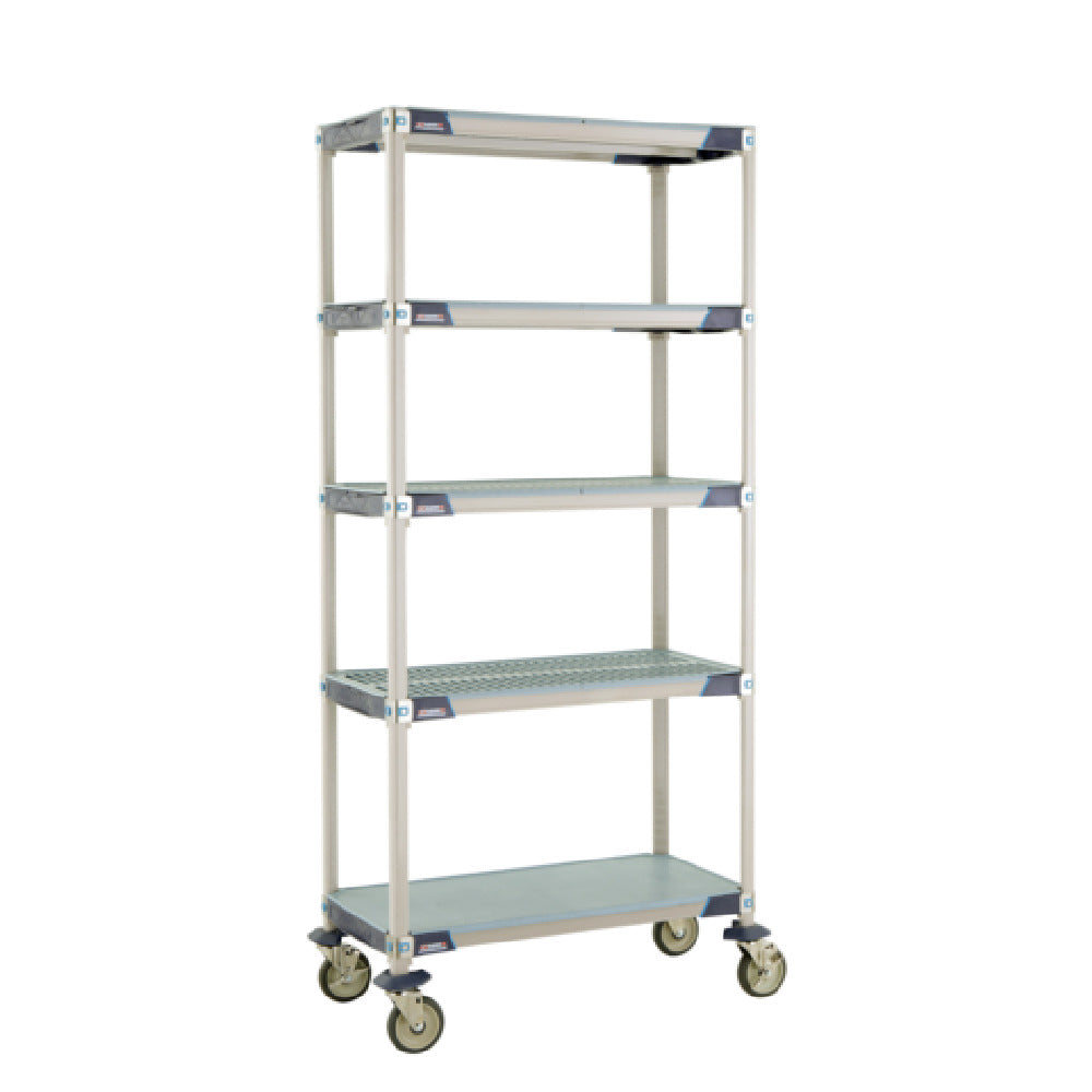 Metro 5X337EGX3 MetroMax® I Mobile Shelving Unit 36"W X 18"D X 80"H (4) Corrosion Proof Open Grid Shelves With Removable Shelf Mats & (1) Corrosion Proof Solid Shelf With Removable Shelf Mat
