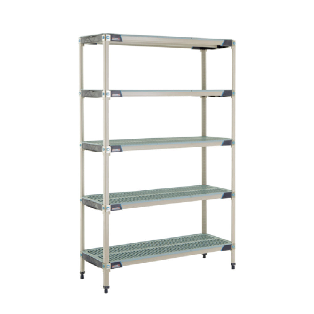 The Metro 5X357GX3 MetroMax® I Starter Shelving Unit 48"W x 18"D x 74"H Rust Proof is a highly durable storage solution designed to meet the rigorous demands of various industrial environments. Featuring a 1000 lb. capacity per shelf and a total of 2000 lb. capacity per unit, it accommodates substantial weight loads, essential for heavy-duty storage needs. The unit includes five open grid polymer shelves, reinforced with type 304 stainless steel corners, highlighting its robust construction and rust-proof nature. The removable polymer shelf mats add versatility and ease of maintenance, while the inclusion of a bag of four wedge connectors with each shelf ensures secure and stable assembly. Supported by four polymer posts, this shelving unit benefits from Microban antimicrobial product protection, enhancing hygiene and reducing the risk of contamination. Designed with a KD (knockdown) structure, it allows for convenient transportation and assembly. The NSF certification underscores its compliance with public health standards, making it suitable for environments where hygiene is paramount. The Metro 5X357GX3 MetroMax® I Starter Shelving Unit stands out in sectors such as food service, healthcare, and manufacturing, providing a reliable and efficient storage solution that combines strength, safety, and cleanliness.