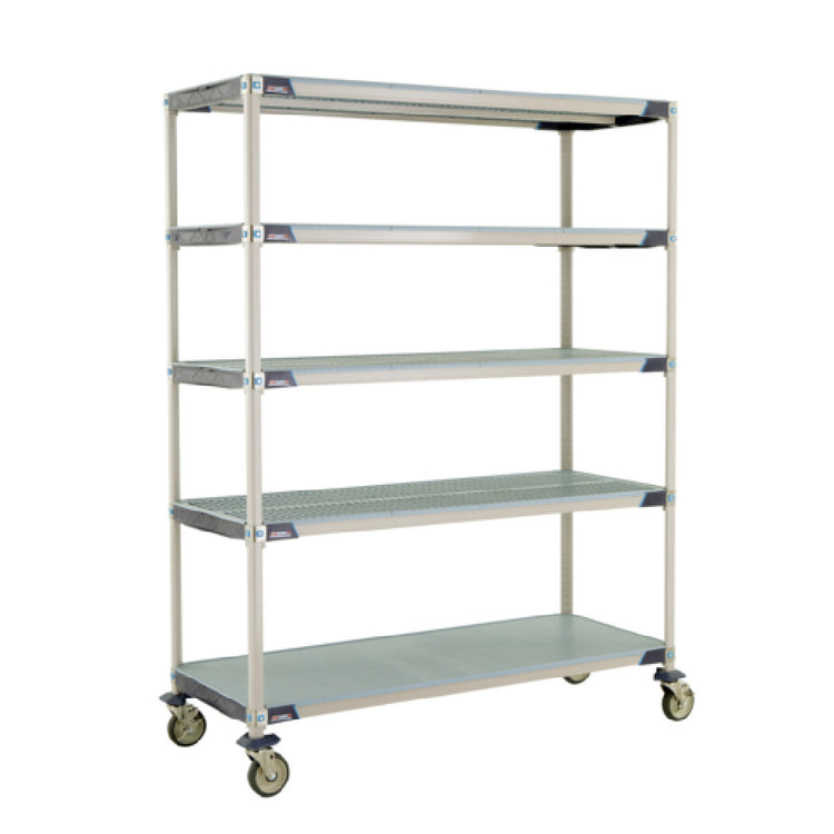 Metro 5X567EGX3 MetroMax® I Mobile Shelving Unit 60"W X 24"D X 80"H (4) Corrosion Proof Open Grid Shelves With Removable Shelf Mats & (1) Corrosion Proof Solid Shelf With Removable Shelf Mat