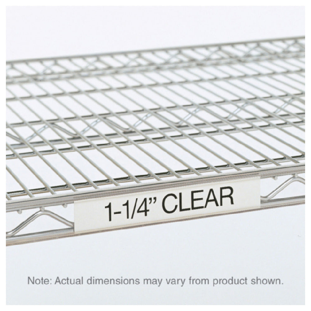 The Metro 9990CL2 Quick Ship Super Erecta® Label Holder is a versatile organization solution measuring 19 inches by 1-1/4 inches, crafted from clear plastic to seamlessly integrate into various commercial settings. Engineered to accommodate most 1-1/4 inch commercial labels, this label holder is designed to enhance operational efficiency by providing clear identification and organization of storage items. The clear plastic construction not only ensures durability but also offers a transparent view for quick and easy label recognition, making it an ideal choice for environments requiring systematic organization such as warehouses, retail spaces, and storage facilities. The Metro 9990CL2 model, part of the Quick Ship category, emphasizes rapid availability and ease of deployment, catering to businesses with time-sensitive demands. The integration of these label holders into the Super Erecta® shelving system streamlines inventory management, allowing for a more organized and efficient workspace. With its practical design and robust construction, the Metro 9990CL2 stands out as a reliable accessory in the storage and organization domain, providing a blend of functionality and clarity in label management for various industry segments.