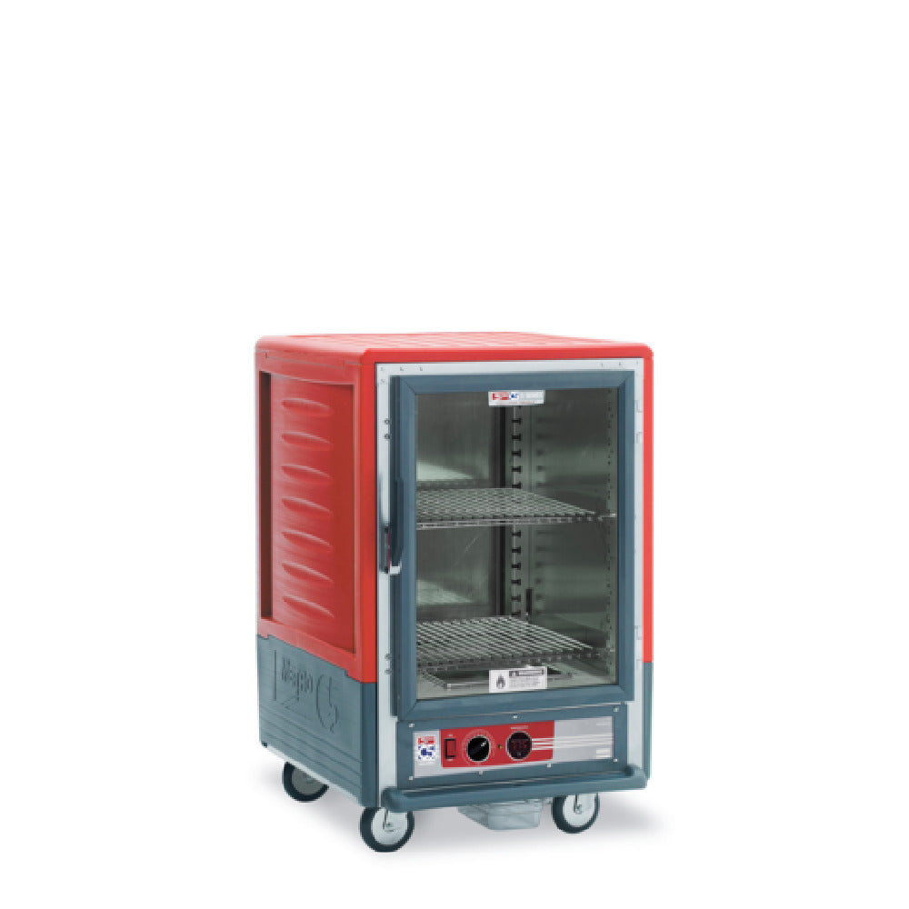The Metro C535-HLFC-S C5™ 3 Series Heated Holding Cabinet Shelves Only Lower Wattage is a versatile solution for efficiently maintaining food temperatures across various culinary environments. This cabinet features a lower wattage design, consuming 1440 watts at 120 volts, and operates on a single-phase power supply of 12 amps with a NEMA 5-15P plug. Its half-height structure is complemented by Red Insulation Armour™, enhancing thermal efficiency while ensuring mobility with 5-inch casters, two of which are equipped with brakes for stability. The unit is designed for ease of use with a clear polycarbonate door, allowing for quick visual inspections without heat loss. Inside, you'll find two adjustable wire shelves, catering to different storage needs, and the removable bottom mount control module facilitates straightforward thermostat adjustments up to 200°F. Constructed from durable aluminum, this cabinet meets cULus and NSF 7 standards, ensuring compliance with safety and sanitation requirements. The Metro C535-HLFC-S cabinet is an essential asset for food service providers requiring reliable holding solutions, particularly in settings where energy efficiency and effective temperature management are crucial.