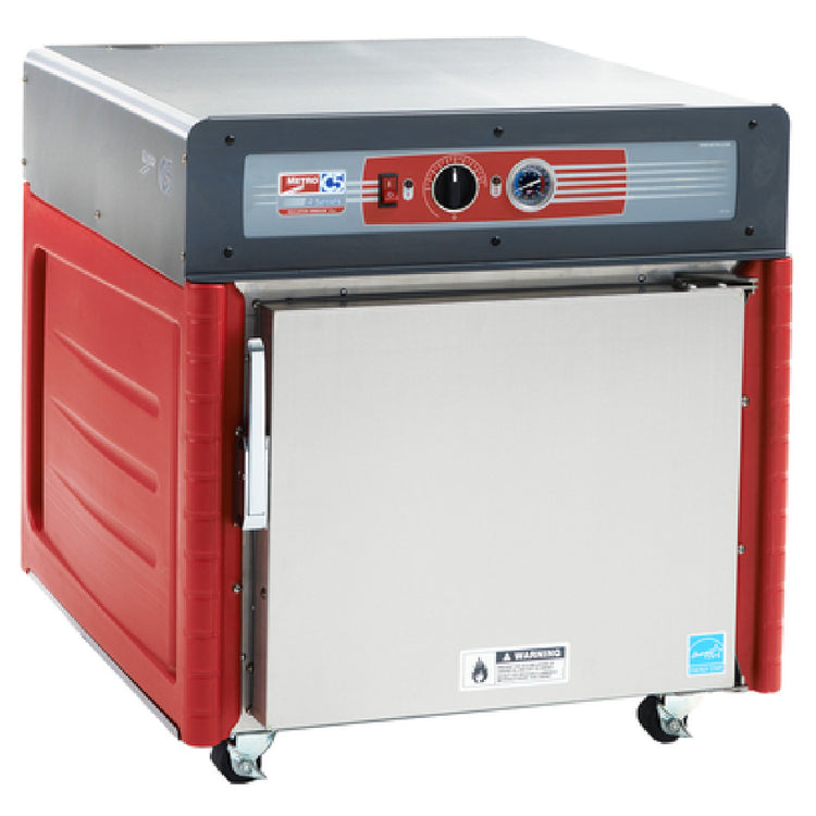 The Metro C543-ASFS-L C5™ 4 Series With Insulation Armour™ Plus Mobile Heated Holding Cabinet is an advanced solution for maintaining optimal food temperature in various food service environments. This under-counter, mobile heated holding cabinet boasts a robust insulated solid door to ensure thermal efficiency. It features top-mounted controls and a thermostat capable of reaching up to 200°F, facilitating precise temperature management. The cabinet is designed with lip load slides on 1-1/2" centers, allowing it to accommodate up to eleven 18" x 26" pans, making it suitable for high-volume food operations. Equipped with 2" casters, the unit offers excellent mobility, enabling seamless integration within busy kitchen spaces. Constructed from durable stainless steel, it guarantees longevity and resilience in demanding conditions. Operating at 120V/60Hz with a power output of 1400 watts and 11.7 amps, it is compatible with a NEMA 5-15P plug. The Metro C543-ASFS-L is certified by cULus and NSF, ensuring compliance with safety and sanitation standards, and carries the ENERGY STAR® rating, reflecting its energy efficiency. This cabinet is an ideal choice for restaurants, catering services, and institutional kitchens seeking reliable, high-performance heated food storage solutions.