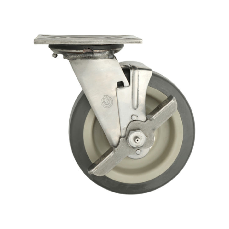 The Metro C6PBGSA Super Erecta® Stainless Steel Cart-Washable Plate Caster Brake is a meticulously engineered product designed to meet the high demands of various industries. This caster features a 6-inch diameter with a 1-1/2-inch wide face, ensuring stability and ease of movement. Constructed with a durable polyurethane wheel tread, it promises longevity and resilience in challenging environments. The inclusion of donut bumpers adds an additional layer of protection against accidental collisions, making it ideal for tight spaces. With a substantial 600 lb. weight capacity, this caster caters to heavy-duty applications, ensuring reliable performance under load. The stainless steel construction not only enhances its strength but also makes it cart-washable, promoting hygiene and ease of cleaning, which is crucial for industries such as food service and healthcare. The foot-operated brake is a convenient feature, offering secure and effortless operation. This caster's design and functionality make it suitable for a broad spectrum of market segments, including industrial, commercial, and institutional settings, where efficient and hygienic transport solutions are paramount. The Metro C6PBGSA is a testament to quality and innovation, providing a practical solution for businesses that prioritize durability and efficiency. It is a versatile choice for enhancing mobility and safety in various operational environments.