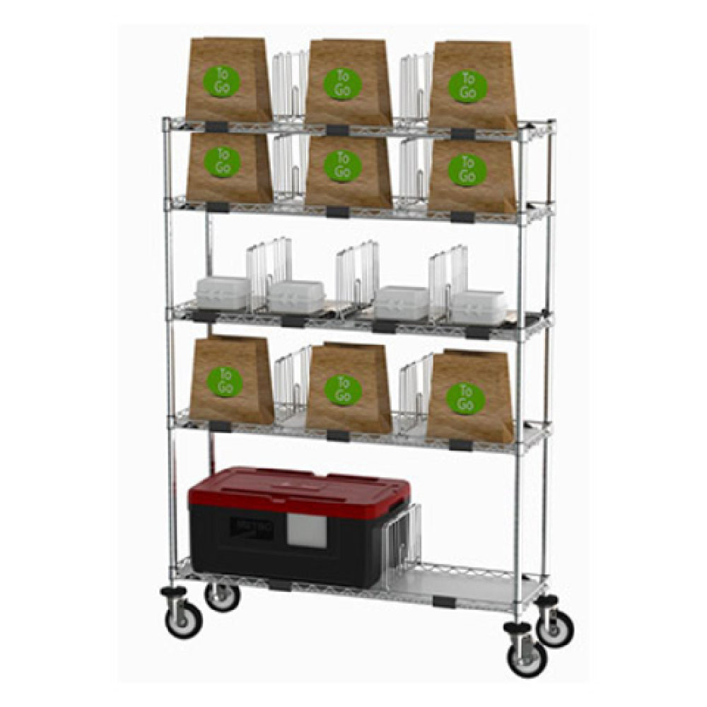 Metro CR1448TGCOPS To-Go Order Pick-Up Station Mobile (5) 48"W X 14"D Chrome Wire Adjustable Shelves With Clear Inlays