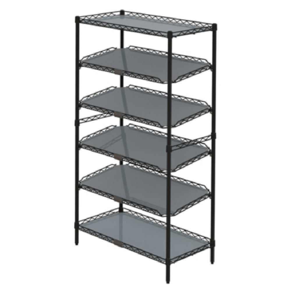The Metro CR1836TGPU To-Go Order Pick-Up Station 6-tier (4) QwikSLOT® 36"W X 18"D Adjustable is a meticulously designed solution for efficient order management in fast-paced food service environments. This pick-up station features four adjustable QwikSLOT® shelves, each measuring 36 inches in width and 18 inches in depth, providing ample space for organizing multiple orders. Its six-tier configuration includes two Super Erecta® drop mat shelves, positioned at the top and bottom, that enhance stability and durability. With six shelf inlays, this station ensures that all orders are securely held in place. The inclusion of two hanger rails allows for additional storage versatility, while five label holders facilitate seamless identification and quick retrieval of orders. Constructed from robust black steel, this pick-up station is built to withstand the demands of high-traffic areas, offering a reliable and long-lasting solution for restaurants, cafés, and other establishments focusing on take-out service. The combination of its adjustable shelving, durable materials, and thoughtful design makes the Metro CR1836TGPU an indispensable tool for optimizing order pick-up efficiency and organization, meeting the diverse needs of businesses within the food service industry.