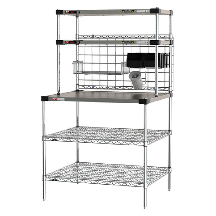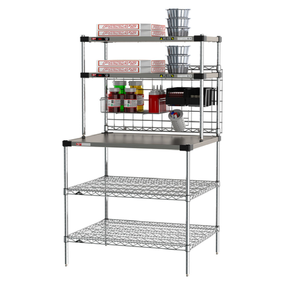 Metro CRHSP-3036 Prep Workstation With Overhead Heated Shelves (1) 36"W X 30"D Reinforced Stainless Steel Shelf