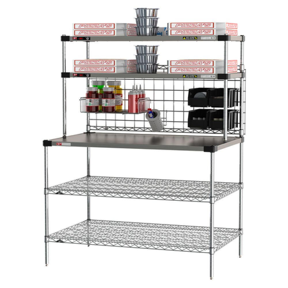 Metro CRHSP-3048 Prep Workstation With Overhead Heated Shelves (1) 48"W X 30"D Reinforced Stainless Steel Shelf