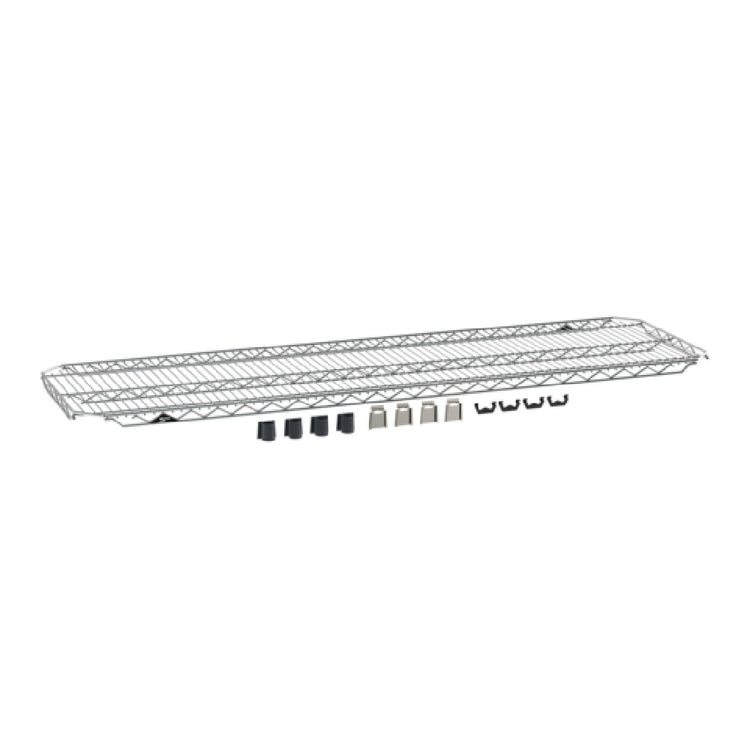 The Metro EZA-1860NC Super Erecta EZ-ADD Shelf is a meticulously designed wire shelving unit measuring 60 inches wide by 18 inches deep, offering exceptional storage versatility for a range of industrial and commercial applications. The product features a chrome-plated finish, providing both durability and aesthetic appeal, and is NSF listed, ensuring compliance with stringent health and safety standards. This shelf is uniquely equipped with corner hardware, which includes four EZ-ADD Collars for straightforward assembly and customization. Additionally, it comes with four stainless steel mounting plates and four lock clips, facilitating secure and stable installation. These features make it particularly suitable for environments that demand reliable and adaptable storage solutions, such as healthcare facilities, laboratories, and food service establishments. The Metro EZA-1860NC is conveniently packaged to ship in one box, streamlining the procurement and setup process. Its robust construction and thoughtful design elements cater to diverse market segments, providing a practical yet sophisticated solution for organizing and optimizing space efficiently.