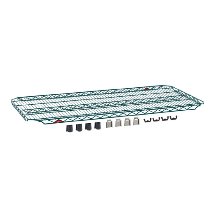 The Metro EZA-2448NK3 Super Erecta EZ-ADD Shelf Wire, with dimensions of 48"W x 24"D, is a versatile addition to storage solutions across various industries. Engineered with robust wire construction, this shelf is designed for durability and reliability. It comes equipped with essential corner hardware, including 4 EZ-ADD Collars, 4 stainless steel mounting plates, and 4 lock clips, ensuring easy assembly and stability. The Metroseal Green finish not only provides an appealing aesthetic but also enhances the shelf's resistance to corrosion, making it suitable for environments demanding high hygiene standards. As an NSF-listed product, it meets stringent public health and safety standards, assuring its suitability in commercial settings such as restaurants and healthcare facilities. The shelf's ability to ship in one box underscores its user-friendly design and ease of transport. Ideal for operations requiring flexible and reliable shelving solutions, the Metro EZA-2448NK3 shelf combines functionality with quality, catering to diverse market segments aiming for efficient space management and organization. This product stands out for its practical design and resilient construction, making it a valuable component for any professional setting requiring dependable storage infrastructure.