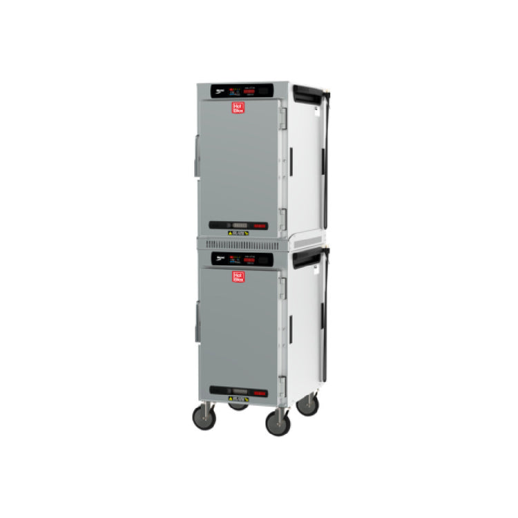The Metro HBCN16-DSPC-M HotBlox™ Insulated Holding Cabinet is a high-performance, mobile pass-thru unit designed for optimal food storage and handling. Engineered for efficiency, this narrow cabinet is equipped with dual-cavity technology, supporting up to 16 pans to accommodate various storage needs in a compact footprint. It features a digital touchscreen controller, ensuring precise settings and easy operation for temperature management. The cabinet's construction includes a solid front door paired with a clear rear door, offering durability while allowing visibility and access from both sides, enhancing operational versatility. The electrical specifications highlight its robust design, operating on (2) 120v/60/1-ph and consuming 875 watts of power, and it includes a standard cord with NEMA 5-15P for seamless connectivity. Certified by UL and NSF, this cabinet meets rigorous safety and sanitation standards, reinforcing its reliability in professional kitchen environments. Proudly made in the USA, the Metro HBCN16-DSPC-M HotBlox™ Insulated Holding Cabinet is tailored to support diverse segment markets within the foodservice industry, delivering a unique value proposition through its innovative design and technical excellence.