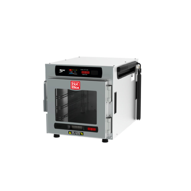 The Metro HBCN4-DCPS-CT HotBlox™ Insulated Holding Cabinet is a specialized piece of equipment designed to meet the unique needs of the food service industry. This pass-thru, narrow, countertop/stacking cabinet can accommodate up to four pans, making it a compact yet efficient solution for food holding requirements. It features advanced digital touchscreen controls, allowing precise temperature management to ensure food remains at optimal serving conditions. The cabinet is equipped with a clear front door and a solid rear door, providing both visibility and insulation as needed. Operating on a 120v/60/1-ph electrical system and consuming 875 watts of power, this unit comes with a cord fitted with a NEMA 5-15P plug, ensuring compatibility with standard electrical outlets. Certified by UL and NSF, it meets rigorous safety and sanitation standards, and its manufacture in the USA underscores its quality craftsmanship. The Metro HBCN4-DCPS-CT HotBlox™ is ideal for various segments of the food service industry, including restaurants, catering operations, and institutional kitchens, where space efficiency and reliable holding performance are critical.