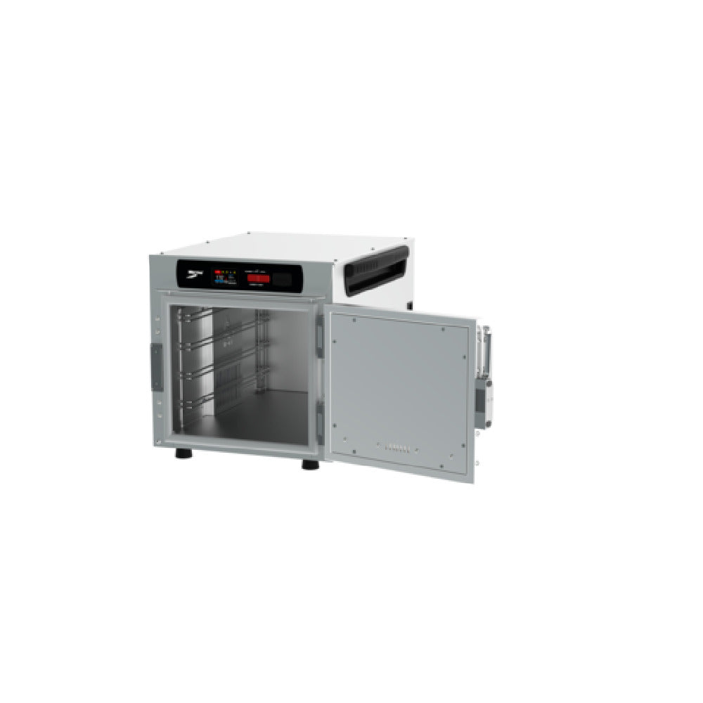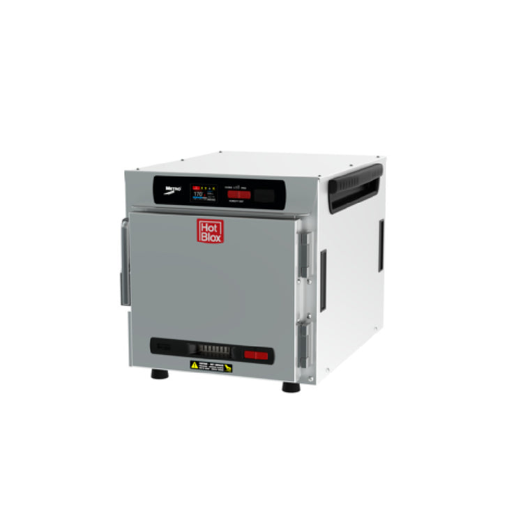The Metro HBCN4-DS-CT HotBlox™ Insulated Holding Cabinet is a narrow, countertop-stacking unit designed to enhance food service efficiency with its versatile features. This cabinet accommodates up to four pans, supporting both full or half-size steam pans and half-size sheet pans, making it a flexible solution for kitchens with varying needs. Equipped with a 2.4-inch touchscreen control panel, the unit allows for precise temperature management and ease of use. Operating at 875 watts, this cabinet requires a 120/60/1-ph power supply and comes with a cord featuring a NEMA 5-15P plug, ensuring compatibility with standard outlets. Constructed from durable aluminum, the cabinet offers robust performance while maintaining lightweight portability. The solid door design enhances heat retention, contributing to energy efficiency. Certified by UL and NSF, this holding cabinet meets rigorous safety and sanitary standards, ensuring reliability in demanding food service environments. Proudly made in the USA, the Metro HBCN4-DS-CT HotBlox™ is ideal for establishments needing compact yet effective solutions for maintaining food temperature, from busy restaurants to catering operations. Accessories are included, enhancing the unit's adaptability and value.