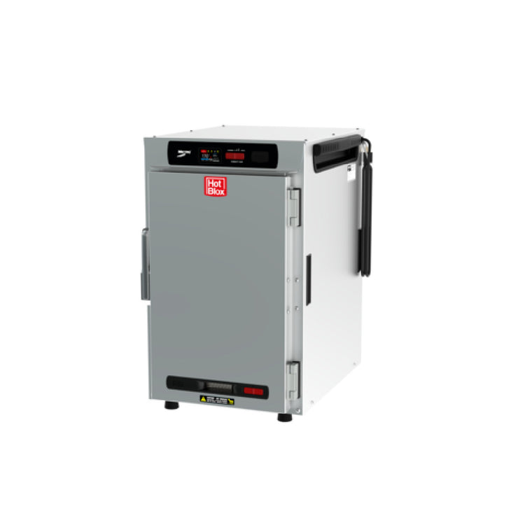 The Metro HBCN8-DSPC-CT HotBlox™ Insulated Holding Cabinet - pass-thru, narrow - is an advanced solution for foodservice operations requiring efficient hot holding capabilities. This countertop/stacking unit accommodates (8) pans, making it a compact yet versatile choice for maintaining optimal food temperatures. Equipped with digital touchscreen controls, it allows precise temperature management, enhancing user convenience and control. The cabinet features a solid front door and a clear rear door, facilitating easy access and visibility, which is ideal for busy kitchen environments. Operating on 120v/60/1-ph with an 875 watts power requirement and a cord with NEMA 5-15P, it is well-suited for standard electrical setups. Certified by UL and NSF, this holding cabinet adheres to rigorous safety and sanitation standards, ensuring reliability and compliance with industry norms. Proudly made in the USA, the Metro HBCN8-DSPC-CT HotBlox™ stands out for its efficient use of space and energy, making it a valuable asset for commercial kitchens, catering services, and restaurants looking to maximize their operational efficiency while maintaining superior food quality. Its innovative design and high-performance features make it a top choice for professionals seeking durability and functionality in their food holding equipment.