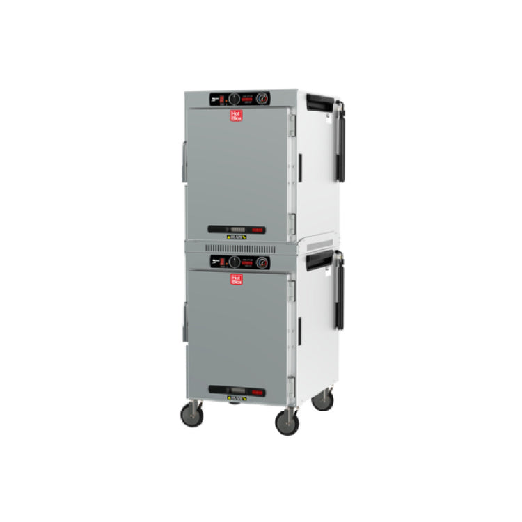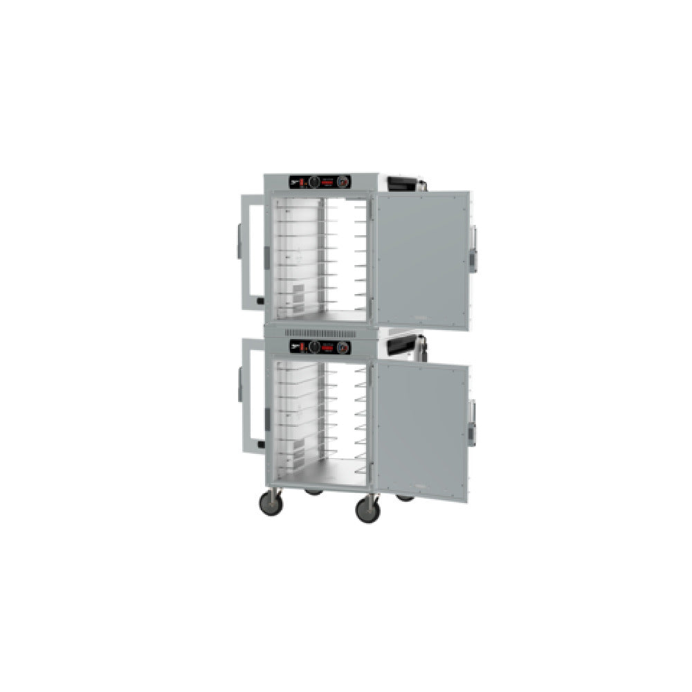 The Metro HBCW16-ASPC-M HotBlox™ Insulated Holding Cabinet is a versatile and efficient solution for any food service operation requiring reliable holding capabilities. This mobile, pass-thru unit is designed to accommodate a wide range of applications with its spacious capacity for 16 pans. Featuring dual-cavity construction, it provides enhanced efficiency and flexibility in food storage and management. The cabinet is equipped with an analog controller, allowing for precise temperature adjustments tailored to specific needs. Its design includes a solid front door for improved insulation and a clear rear door for easy monitoring of contents. Operating on (2) 120v/60/1-ph power supplies and consuming 875 watts, the Metro HBCW16-ASPC-M ensures energy-efficient performance. The cord is fitted with a NEMA 5-15P plug for convenience. Adhering to rigorous standards, this holding cabinet is UL and NSF certified, guaranteeing quality and safety. Proudly made in the USA, the Metro HBCW16-ASPC-M HotBlox™ Insulated Holding Cabinet is a practical choice for professional kitchens, catering businesses, and institutional food services, offering a reliable and adaptable solution for maintaining optimal food temperatures and ensuring quality service delivery across various market segments.