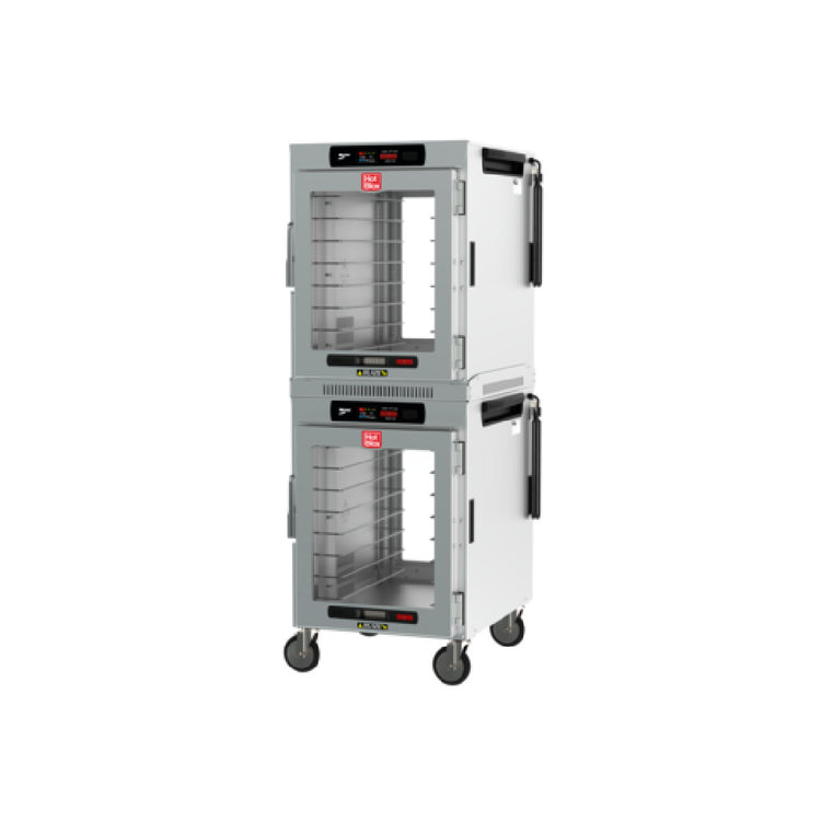 The Metro HBCW16-DCPC-M HotBlox™ Insulated Holding Cabinet Mobile Pass-thru is an advanced solution designed for efficient food storage and temperature maintenance in professional kitchens. This unit boasts a wide design capable of holding 16 pans, making it ideal for facilities that require substantial storage capacity. Its dual-cavity feature allows for versatile separation of contents while maintaining optimal temperatures. Equipped with a digital touchscreen controller, it provides precise temperature regulation, enhancing user convenience and control. The clear front and rear doors facilitate easy monitoring of contents without opening the cabinet, thereby minimizing heat loss. Operating on (2) 120v/60/1-ph electrical inputs with 875 watts, it is energy efficient and suitable for various kitchen environments. The inclusion of a cord with NEMA 5-15P ensures straightforward connectivity to standard power outlets. Certified by UL and NSF, it meets rigorous safety and sanitation standards, reinforcing its reliability and quality. Proudly made in the USA, this cabinet is an exemplary choice for foodservice operations seeking a reliable, high-capacity holding solution that combines innovation with practicality.