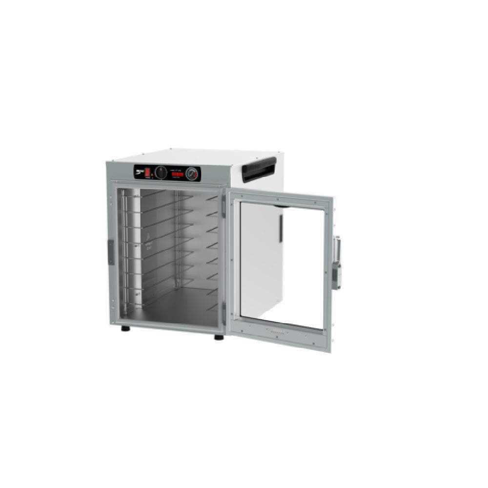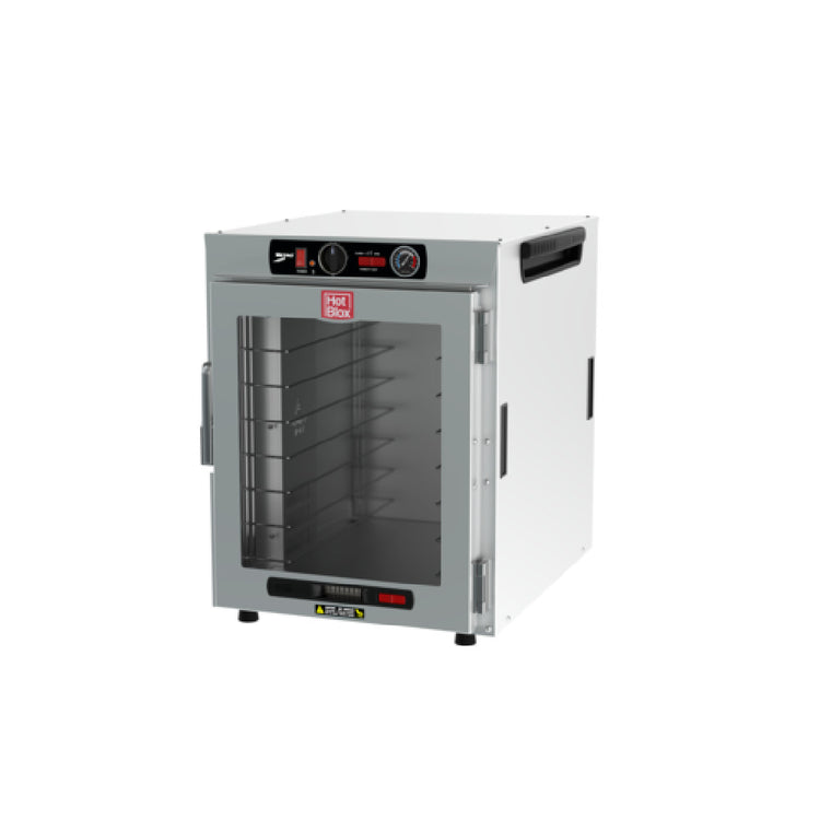 The Metro HBCW8-AC-CT HotBlox Insulated Holding Cabinet Wide (8) Pan Countertop Stacking is a versatile piece of equipment designed for efficient food service operations. This cabinet accommodates both full-size and half-size steam and sheet pans, providing flexibility in various culinary settings. It operates with analog controls and utilizes 875 watts of power, making it a reliable choice for maintaining food temperatures. Designed for countertop use, its stacking capability optimizes space in busy kitchens. The cabinet’s clear door allows for easy monitoring of contents without compromising insulation. Equipped with a cord and NEMA 5-15P plug, it ensures convenient electrical connectivity at 120/60/1-ph. Constructed from durable aluminum, it promises longevity and resilience in demanding environments. Certified by UL and NSF, it meets stringent safety and hygiene standards, a testament to its quality and usability in professional kitchens. Proudly made in the USA, the Metro HBCW8-AC-CT HotBlox Insulated Holding Cabinet is an essential asset in enhancing operational efficiency, catering to diverse market segments within the food industry. Its inclusion of accessories further enhances its value proposition, making it a comprehensive solution for holding and serving needs.