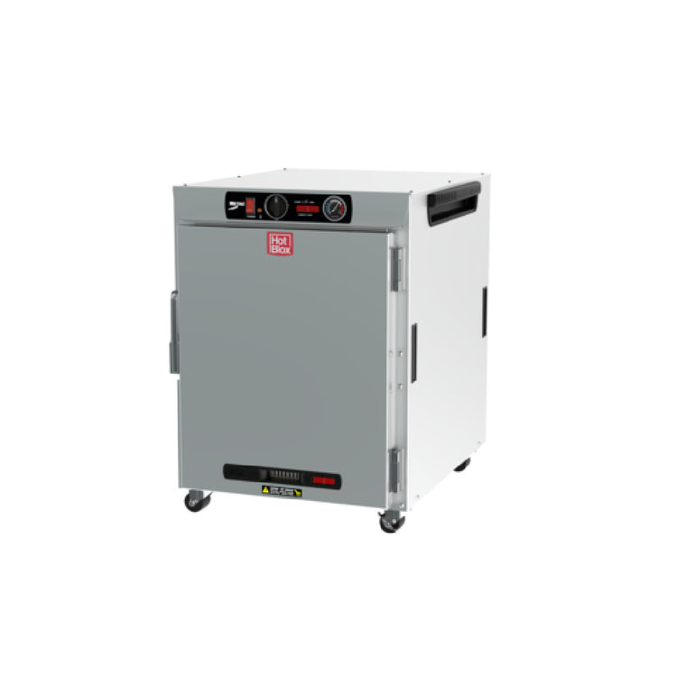 The Metro HBCW8-AS-UC HotBlox™ Insulated Holding Cabinet Wide (8) Pan Undercounter is a highly efficient solution designed for commercial kitchens requiring robust and reliable temperature control. This undercounter model accommodates up to eight full or half-size steam and sheet pans, providing versatile storage options for various food service operations. Equipped with analog controls, it ensures precise management of internal conditions, maintaining optimal food temperatures. The cabinet features a solid door and is mounted on 2-inch casters for easy mobility, making it a practical addition to any kitchen layout. With an electrical output of 875 watts and compatible with a 120/60/1-ph power source, it includes a cord with NEMA 5-15P plug for straightforward installation. Constructed from durable aluminum, the Metro HBCW8-AS-UC is a testament to quality craftsmanship, being UL and NSF certified for safety and sanitation standards. Manufactured in the USA, this insulated holding cabinet is not only a reliable choice for maintaining food quality but also an assurance of compliance with rigorous industry benchmarks, catering to the needs of restaurants, catering services, and institutional kitchens alike. Its thoughtful design and operational efficiency make it a valuable investment for professionals seeking to enhance their service quality.