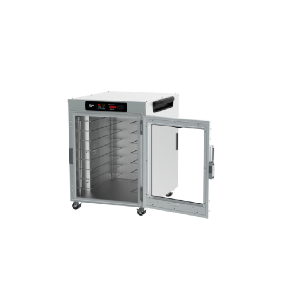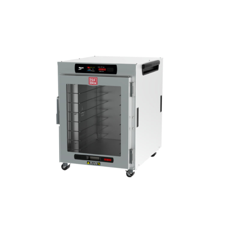 The Metro HBCW8-DC-UC HotBlox™ Insulated Holding Cabinet Wide (8) Pan Undercounter is a state-of-the-art solution for efficient food holding needs, expertly combining advanced features and robust construction. This insulated holding cabinet boasts a wide capacity, accommodating up to eight full or half-size steam and sheet pans, making it an ideal choice for busy commercial kitchens. Equipped with a 2.4-inch touchscreen control panel, it ensures precise temperature management, enhancing operational efficiency. The cabinet's clear door design allows for quick visual checks without opening the unit, preserving the internal environment. Its mobility is supported by 2-inch casters, facilitating easy movement across kitchen spaces. Operating with an 875-watt power output on a 120/60/1-phase connection, it is fitted with a cord featuring a NEMA 5-15P plug for straightforward installation. The cabinet is constructed from durable aluminum, ensuring long-lasting use and reliability. Certified by UL and NSF, it meets stringent safety and sanitation standards. Proudly made in the USA, the Metro HBCW8-DC-UC is a versatile and dependable asset for food service operations seeking superior holding solutions that cater to diverse market segments within the industry.
