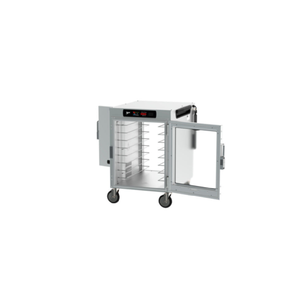 The Metro HBCW8-DCPS-M HotBlox™ Insulated Holding Cabinet is a versatile mobile pass-thru unit designed for efficient food service operations. This wide cabinet accommodates up to eight pans, making it suitable for high-volume kitchens requiring optimal storage solutions. Equipped with a digital touchscreen controller, the cabinet offers precise temperature management, ensuring food is maintained at ideal conditions. The innovative design features a clear front door for easy visibility and a solid rear door for added insulation. Operating on a 120v/60/1-ph electrical system with 875 watts of power, it is compatible with standard outlets using the NEMA 5-15P plug. The cabinet is UL and NSF certified, reflecting its adherence to rigorous safety and sanitation standards. Manufactured in the USA, the Metro HBCW8-DCPS-M combines robust construction with advanced technology, making it an invaluable asset for commercial kitchens, catering services, and institutional food operations seeking reliable and efficient food holding solutions. This product’s unique pass-thru design facilitates streamlined service and enhanced workflow, allowing for easy access from both sides, which is ideal for environments requiring quick and efficient food service. With its blend of functionality and compliance, this cabinet stands out in the competitive landscape of professional food storage equipment.