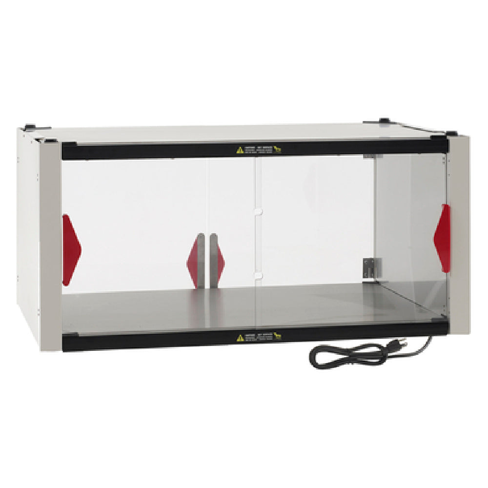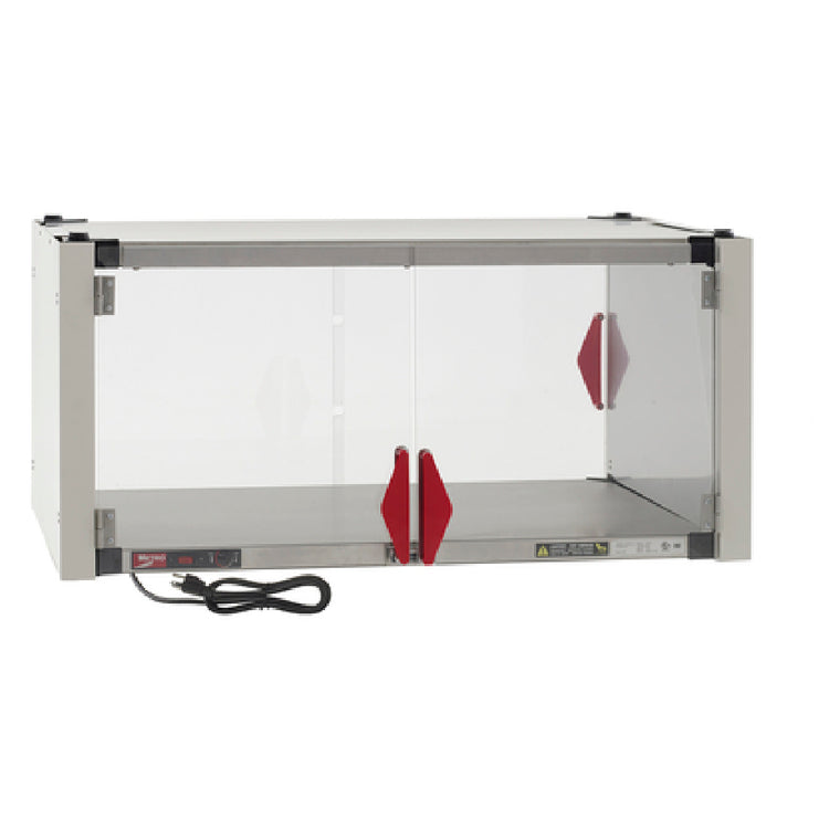 - 36"W x 24"D heated shelf with clear doors