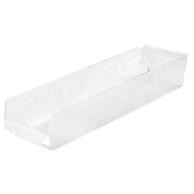 The Metro MB30164CLN Shelf Bin Nesting is a versatile storage solution designed for optimal organization and efficiency across various industries. Measuring 23-5/8 inches wide, 6-5/8 inches deep, and 4 inches high, this clear shelf bin is engineered to seamlessly integrate into existing storage systems, catering to diverse market segments from healthcare to retail. Its nesting feature allows for convenient stacking, maximizing storage capabilities while minimizing space usage when not in active use, a crucial advantage for businesses with limited storage areas. Sold in cases of six, this product offers bulk convenience for large-scale operations. The clear design of the Metro MB30164CLN ensures easy visibility of contents, facilitating quick inventory assessments and enhancing operational efficiency. This makes it particularly valuable for sectors where inventory management is crucial. The durable construction of the bin ensures longevity and resilience, making it a dependable choice for both high-traffic and demanding environments. Whether used for organizing small parts in industrial settings or maintaining order in retail backrooms, the Metro MB30164CLN Shelf Bin stands out as a reliable and practical storage option, meeting the needs of businesses seeking to optimize space and streamline organization.