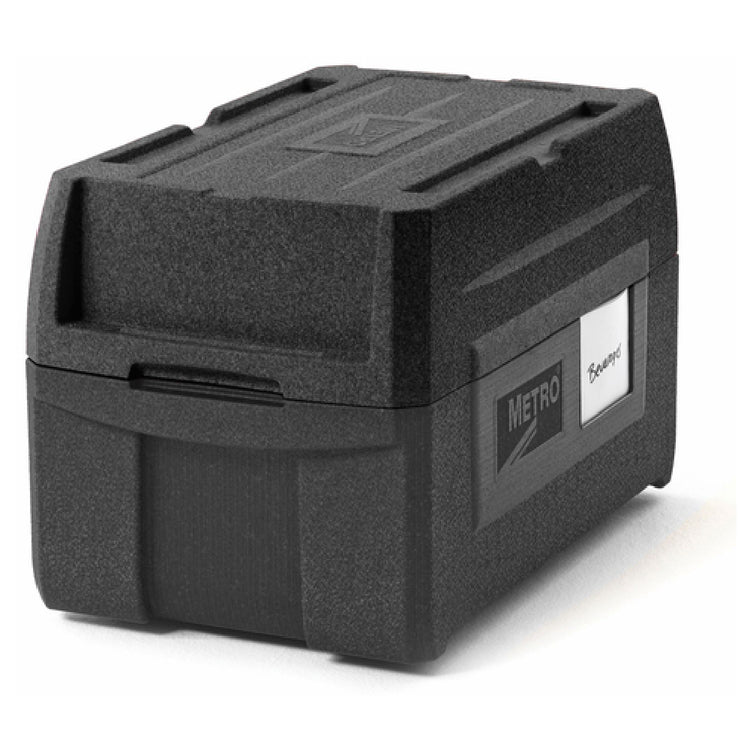 The Metro ML180XL-BL Mightylite BigBoy™ Multi-Purpose Food Carrier is an exceptionally versatile top-load, insulated carrier designed for professionals in the food service industry. With a capacity to accommodate five pans, it is compatible with full-size, 1/2 size, and 1/3 size pans ranging from 2-1/2" to 8" in depth. Featuring four integrated handles, this food carrier ensures ease of transport, while its stackable design optimizes space utility. Additionally, it includes a label holder for efficient organization. A standout feature is its multi-functional snap seal lid, which not only secures contents but also doubles as a server, enhancing its utility in diverse catering environments. Constructed from ultra-lightweight expanded polypropylene, the ML180XL-BL is both 100% recyclable and CFC-free, reflecting its eco-friendly design. Its black exterior ensures a professional appearance, and as an NSF-certified product, it meets rigorous public health and safety standards. Ideal for catering businesses and other food service segments, this food carrier combines practicality with sustainability, making it an essential asset for any operation requiring reliable temperature maintenance and convenient transport of culinary creations.