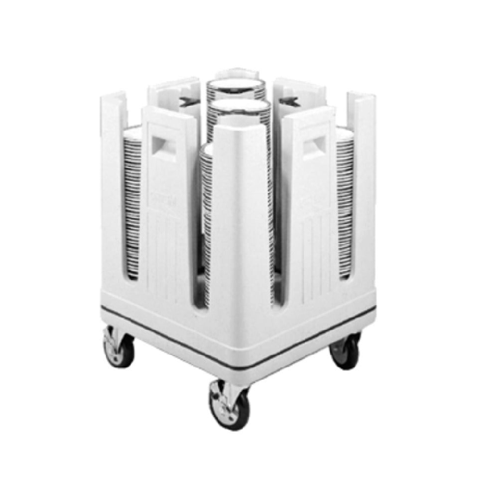 The Metro PCD12 Poker Chip Dish Dolly is a meticulously designed unit measuring 30-1/8"W x 30-1/8"D x 31-15/16"H, tailored to cater to the diverse needs of the food service industry. It accommodates a maximum dish size of 12-5/8" and features four columns, each capable of holding approximately 60 dishes, resulting in a total capacity of 240 dishes. This non-adjustable dolly ensures efficient organization with its two-handed access facilitated by recessed handles. Its mobility is enhanced by 5" diameter swivel casters, two of which are equipped with brakes, complemented by durable neoprene wheels. The dolly's chip-resistant polymer shell is fortified with Microban® antimicrobial protection, ensuring hygienic storage even in demanding environments. Add to this its aesthetic blue finish and a vinyl dust/water splash cover, it not only provides robust functionality but also adds a touch of visual appeal to dish handling operations. The NSF certification underscores its compliance with stringent health and safety standards, making it a reliable choice for restaurants, catering businesses, and institutional kitchens that require both efficiency and hygiene in dishware handling.