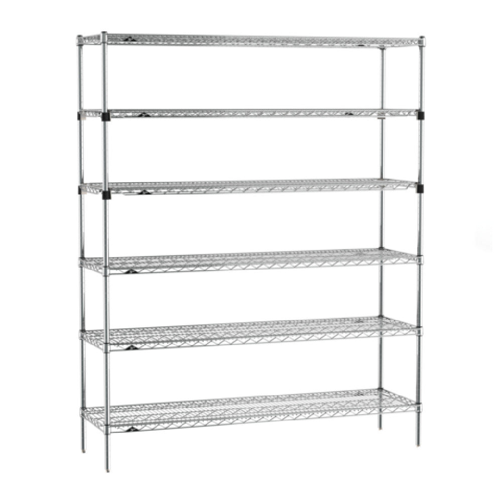 The Metro SEZ-186074C-S-42 Super Erecta® Starter Shelving Unit is a versatile and robust storage solution designed to meet diverse organizational needs across various industries. Measuring 60 inches in width, 18 inches in depth, and 74 inches in height, this unit features six tiers that include four Super Erecta wire shelves and two EZ-ADD shelves, providing ample storage space for a wide range of items. The unit is supported by four sturdy posts and features a chrome-plated finish, offering both durability and aesthetic appeal. Its knock-down (KD) design allows for easy assembly and reconfiguration, enhancing its adaptability for different storage requirements. The unit is NSF certified, ensuring it meets rigorous standards for public health and safety, making it an ideal choice for environments where hygiene is paramount, such as in the food service or healthcare sectors. Whether used in commercial kitchens, laboratories, or retail spaces, the Metro SEZ-186074C-S-42 offers a reliable and efficient organization solution, balancing strength with ease of accessibility and maintenance. The integration of EZ-ADD shelves further enhances its flexibility, allowing for quick adjustments to accommodate changing storage needs without compromising on stability or structure.