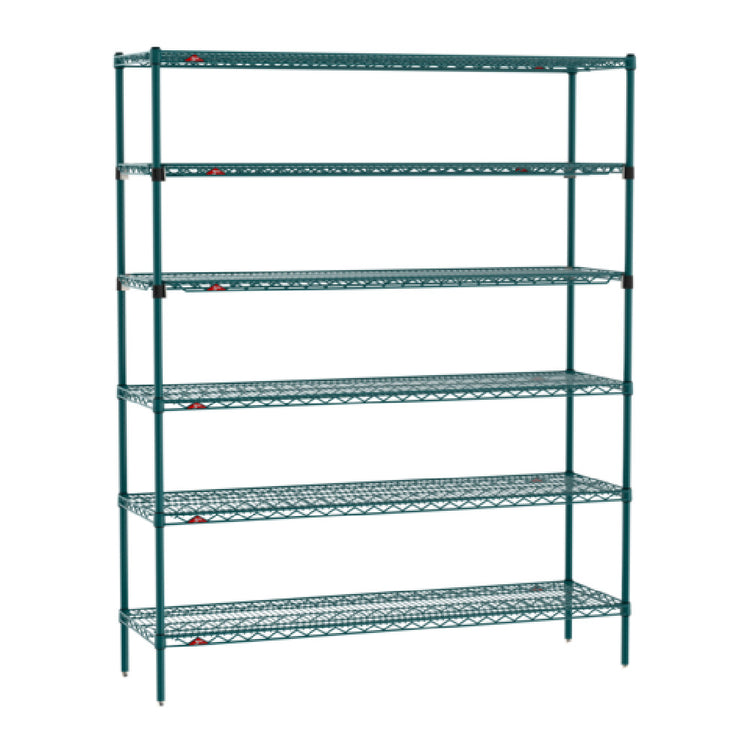 The Metro SEZ-186074K3-S-42 Super Erecta® Starter Shelving Unit is an expertly designed storage solution that measures 60 inches in width, 18 inches in depth, and 74 inches in height, making it suitable for a variety of industrial and commercial applications. This unit features six tiers of shelving, which include four Super Erecta wire shelves and two EZ-ADD shelves, providing flexibility and ample storage capacity. Each component is supported by four sturdy posts. The shelving unit is finished with a Metroseal 3 Green epoxy coating that offers corrosion resistance, ensuring longevity and durability even in challenging environments. Additionally, it incorporates Microban® antimicrobial protection to inhibit the growth of bacteria, mold, mildew, and fungi. This makes the unit particularly valuable in settings where hygiene is a priority, such as in food service or healthcare industries. The unit is supplied in a knockdown (KD) form, facilitating easy assembly and transport. It is NSF certified, guaranteeing compliance with strict public health and safety standards. The Metro SEZ-186074K3-S-42 is an ideal choice for businesses seeking reliable and adaptable shelving options that meet rigorous industry requirements.