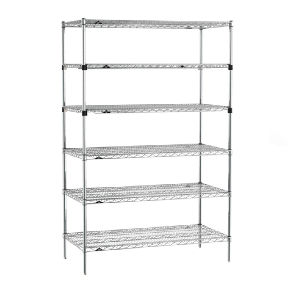 The Metro SEZ-244874C-S-42 Super Erecta Starter Shelving Unit is a versatile and robust storage solution that measures 48 inches in width, 24 inches in depth, and 74 inches in height. It is designed with six tiers, including four Super Erecta wire shelves and two EZ-ADD shelves, providing flexible storage options for various items. The unit is supported by four sturdy posts and features a chrome-plated finish, ensuring durability and resistance against wear and tear. This shelving unit is delivered in a knockdown (KD) format, facilitating easy assembly and installation. As an NSF-certified product, it meets stringent standards for public health protection, making it suitable for use in environments that require high levels of hygiene, such as commercial kitchens, healthcare facilities, and laboratories. The Metro SEZ-244874C-S-42 is engineered to offer practical storage solutions across different industry segments, providing a reliable framework to organize and access materials efficiently. Its adaptability and quality construction make it a valuable addition to any professional setting looking to optimize space and enhance organizational efficiency.
