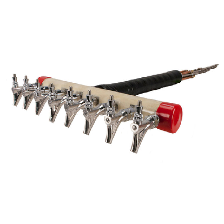 The Micro Matic 1735-S Kool-Rite™ Insert Module Short Shanks 24"W is engineered for precision and efficiency, catering to the needs of commercial beverage dispensing operations. This product features eight 304 stainless steel faucets, a hallmark of durability and rust resistance, perfectly suited for high-volume use. Each faucet is connected through 1-5/8" leak-proof stainless steel shanks, ensuring a secure and uninterrupted flow of beverages. The shanks are designed with a 3" on-center (OC) configuration, optimizing space while maintaining ease of access. The module incorporates stainless steel product lines and copper coolant lines, contributing to its robust cooling capabilities and ensuring beverages are served at optimal temperatures. A cooling block is included as part of the module, enhancing its operational efficiency. The Kool-Rite™ system is NSF certified, reflecting its adherence to rigorous public health standards, thus reassuring operators of its safety and quality. The 24" width of the module makes it a compact yet powerful addition to any bar or beverage service setup. Its thoughtful design and superior construction make the Micro Matic 1735-S a reliable choice for businesses aiming to deliver premium beverage experiences across different market segments, from small bars to large-scale events.