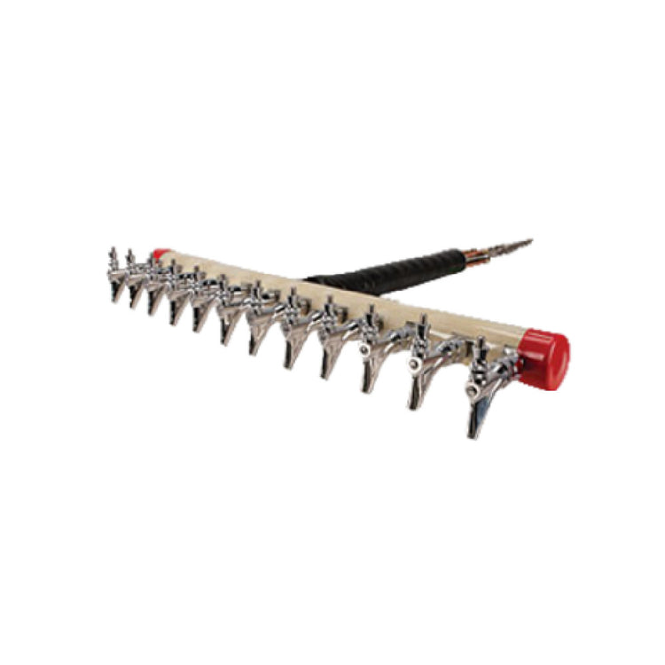 The Micro Matic 1737-L Kool-Rite™ Insert Module Long Shanks 36"W is a high-performance dispensing solution meticulously designed for the beverage industry, catering to both commercial and premium settings. This module features twelve 304 stainless steel faucets, ensuring durability and resistance to corrosion, ideal for maintaining high standards of hygiene. Equipped with 2-5/8" leak-proof stainless steel shanks, the 36" wide module promises seamless beverage delivery. The 3" on-center arrangement of the faucets provides optimal spacing, facilitating efficient service in high-volume environments. The integration of stainless steel product lines alongside copper coolant lines underscores the system’s robustness and commitment to maintaining beverage temperature integrity. Additionally, it includes a cooling block, enhancing its refrigeration capabilities for consistent beverage quality. This module is NSF certified, affirming its compliance with stringent safety and quality regulations within the food and beverage sector. Designed for versatility across different market segments, the Micro Matic 1737-L Kool-Rite™ Insert Module stands out as a reliable and efficient solution for establishments prioritizing performance and durability in their beverage dispensing systems.