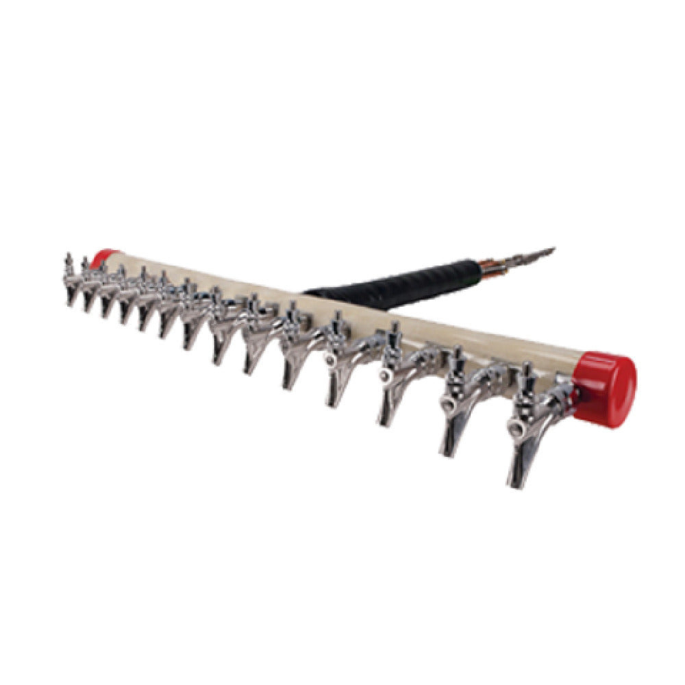 The Micro Matic 1738-L Kool-Rite™ Insert Module Long Shanks 42"W is an advanced beverage dispensing solution, expertly designed to cater to the demanding needs of commercial establishments. This module is equipped with 14 304 stainless steel faucets, providing durability and resistance to corrosion, making it a reliable choice for high-usage environments. The 42-inch wide unit features 2-5/8 inch leak-proof stainless steel shanks, ensuring a secure and efficient operation with minimized downtime due to leaks. With a 3-inch OC (on-center) configuration, the product facilitates optimal alignment and installation. Complementing its robust construction, the module includes stainless steel product lines and copper coolant lines, which contribute to its efficient operation by maintaining optimal temperature control. Additionally, the inclusion of a cooling block further enhances the system's ability to regulate temperature, ensuring beverages are served at their ideal temperature. Certified by NSF, this module adheres to strict public health and safety standards, making it suitable for various sectors in the beverage industry, including bars, restaurants, and catering services. The Micro Matic 1738-L Kool-Rite™ Insert Module is a premium solution that combines durability, efficiency, and regulatory compliance, making it an invaluable asset for businesses seeking reliable beverage dispensing technology.