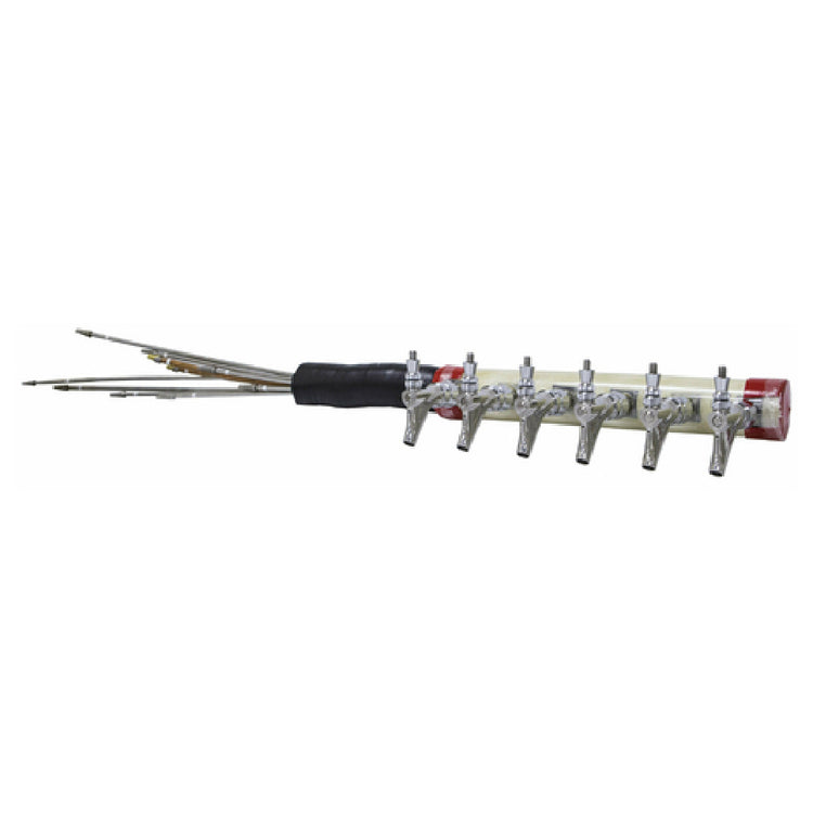 The Micro Matic 1740-S Kool-Rite™ Insert Module is a specialized component designed to enhance beverage dispensing systems with precision and efficiency. Featuring six faucets, this module caters to establishments requiring multiple dispensing points, facilitating a streamlined beverage service. Each faucet is strategically spaced 3-1/2 inches on center, optimizing space utilization while maintaining functionality. This configuration is particularly beneficial for high-volume venues, such as bars and restaurants, where quick and simultaneous access to multiple beverages is essential. The inclusion of a short shank design further underscores its versatility, allowing for easy integration within compact setups. Crafted by Micro Matic USA, a leader in beverage dispensing solutions, the 1740-S Kool-Rite™ Insert Module embodies reliability and innovation. Its design ensures compatibility with a variety of dispensing systems, meeting the diverse needs of the hospitality industry. Whether employed in bustling urban bars or spacious event venues, this module is engineered to support seamless operations and enhance customer satisfaction. By investing in the Micro Matic 1740-S Kool-Rite™ Insert Module, businesses can optimize their beverage dispensing capabilities, ultimately contributing to a superior overall service experience.