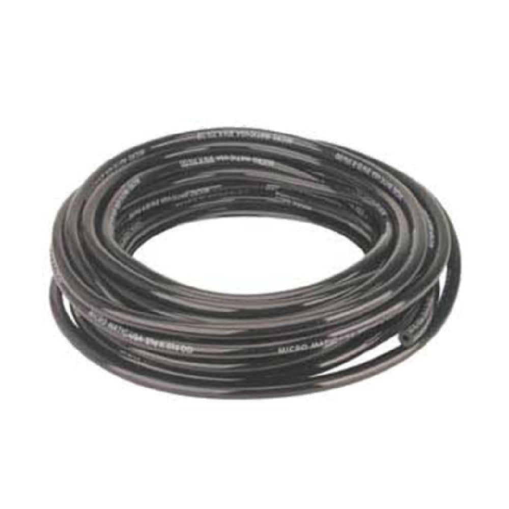 The Micro Matic 547B600 3/16" I.D. Black Vinyl Hose - 50' Coil is a specialized component designed to meet the needs of various industry segments requiring precise fluid conveyance. This hose features an inner diameter of 3/16 inches, making it suitable for applications that demand small-bore tubing. The black vinyl construction provides not only a sleek, professional appearance but also durability and flexibility, ensuring it withstands regular use in demanding environments. Additionally, the 50-foot coil length offers ample material for extensive setups, reducing the need for frequent connections and potential leak points. Ideal for beverage dispensing systems, this hose can efficiently handle the rigors of commercial operations, whether in restaurants, bars, or catering services. Its design emphasizes reliability and performance, supporting consistent flow rates and minimizing maintenance interruptions. The Micro Matic 547B600 is engineered to align with industry standards, ensuring compatibility with a wide range of fittings and equipment, thereby enhancing its versatility across different applications. This hose stands out for its balance of technical precision and practical functionality, making it a dependable choice for professionals seeking quality fluid transfer solutions.