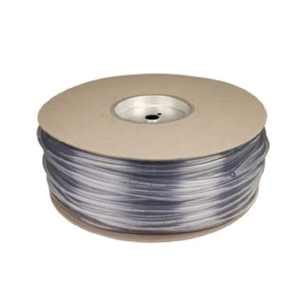 The Micro Matic 548C6000 1/4" I.D. Clear Vinyl Hose - 500' Spool is a highly durable and versatile solution engineered for a variety of industries requiring precise fluid transfer. With an inner diameter of 1/4", this hose is designed to provide efficient flow control, making it suitable for applications such as beverage dispensing, laboratory settings, and light industrial use. The clear vinyl construction of the hose allows for easy visual monitoring of fluid movement, ensuring transparency in operations and facilitating quick diagnostics. The substantial length of 500 feet per spool ensures extended operational capability, reducing the need for frequent replacements or splicing in long-distance applications. This product's robust vinyl material is resistant to a range of environmental factors, offering longevity and reliable performance even in demanding conditions. The Micro Matic 548C6000 is particularly advantageous for businesses that prioritize ease of installation and maintenance, as its flexible nature allows for effortless routing and adaptation to various equipment configurations. Whether utilized in commercial or industrial settings, this clear vinyl hose provides a dependable and efficient medium for fluid conveyance, enhancing operational efficiency and reliability across diverse sectors.