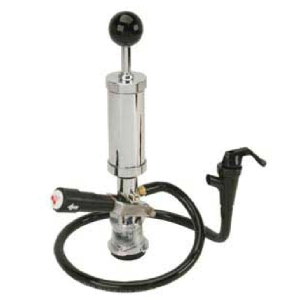 The Micro Matic 751-036 Party Pump 4" Chrome Lever Handle is a specialized draft beer dispensing system designed for convenience and reliability in casual settings like parties or gatherings. This compact unit features a 4-inch chrome lever handle, providing a sturdy grip for easy manipulation and control during use. The party pump's chrome construction not only ensures durability but also adds a sleek and professional appearance, making it attractive for event setups. The product is engineered to fit seamlessly with standard keg systems, allowing users to effortlessly tap into a variety of beer kegs. Its portable design caters to both casual beer enthusiasts and professional caterers, who require a flexible yet efficient dispensing solution. The Micro Matic 751-036 is ideal for entry-level users seeking a straightforward method to serve beer without the complexities of CO2 systems. Its functionality is tailored to enhance the experience of beer dispensing, capitalizing on simplicity and effectiveness. By using this party pump, users can expect a practical tool engineered with quality materials tailored to withstand the demands of frequent use, ensuring an enjoyable and hassle-free beverage service.