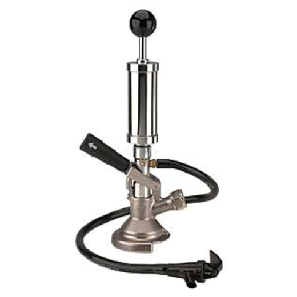 The Micro Matic 751-059 Import Party Pump A-system with an integrated pressure relief valve is a sophisticated tool engineered for the precise dispensing of premium beers such as Warsteiner, Spaten, and Paulaner. At its core, the 4-inch chrome-plated pump provides durability and reliability, ensuring seamless operation during high-demand events. The tin-nickel plated base contributes to the product's robust construction, enhancing its longevity and resistance to wear. Ergonomically designed, the pump features an ergo handle that facilitates comfortable, efficient handling and operation. Utilizing the HP-700 pump mechanism, this party pump guarantees accurate and consistent pouring, crucial for maintaining the quality and taste of imported beers. This product is specifically tailored for the A-system keg valve, making it an essential tool for distributors, event organizers, and beer enthusiasts aiming to deliver an authentic beer dispensing experience. Its integrated pressure relief valve adds a layer of safety by managing internal pressure effectively, preventing over-carbonation and ensuring each pour is perfect. The Micro Matic 751-059 is a distinguished choice for those seeking professional-grade equipment to elevate the serving of imported beers in various settings, from festive gatherings to formal events, where quality and performance are paramount.