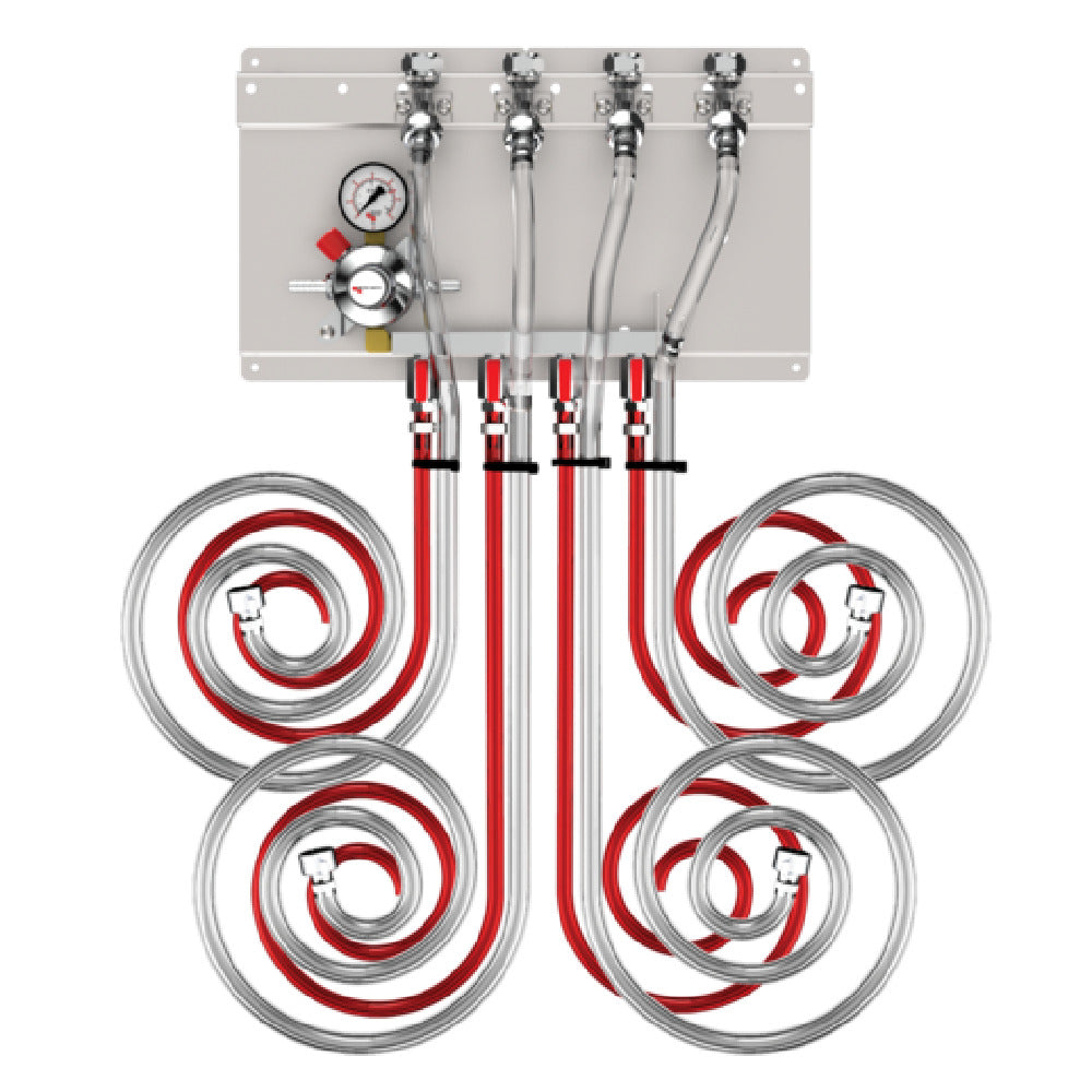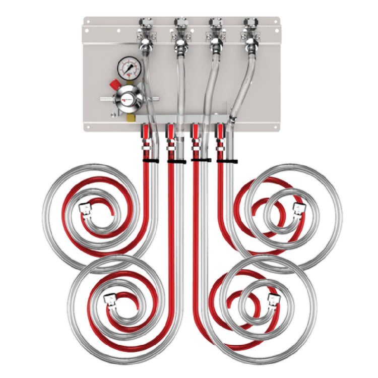 The Micro Matic 83415-E-PP 4 Product Premium Plus Regulator Panel Kit With 3/8" Jumper Lines is an advanced solution tailored for the precise regulation of multiple gas products in various professional settings. This kit is specifically designed to serve industries that require reliable and efficient gas management systems. Featuring a regulator panel capable of handling four different products, it ensures seamless integration and optimal performance across diverse applications. The inclusion of 3/8" jumper lines enhances the kit's versatility and ease of installation, facilitating smooth connections between components. The Micro Matic 83415-E-PP is notable for its robust construction and precision engineering, making it an ideal choice for sectors where accuracy and durability are paramount. This kit is suitable for breweries, beverage dispensing systems, and other commercial environments that demand high-quality gas regulation solutions. By employing the Micro Matic 83415-E-PP, businesses can expect enhanced operational efficiency and a dependable gas regulation experience. Its thoughtful design provides a user-friendly interface while maintaining the highest standards of performance and reliability. Whether for maintaining beverage quality or ensuring consistent gas flow, this premium regulator panel kit stands out as a vital tool in professional gas management.