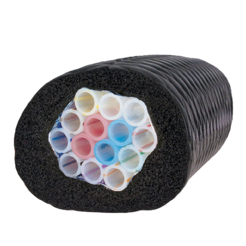 The Micro Matic CDI1054-BF Barriermaster Flavorlock Trunk Line is a versatile and essential component for optimizing beverage dispensing systems. With an internal diameter of 5/16 inches, this trunk line is engineered to accommodate up to ten different products, ensuring a wide variety of beverage options. Integral to its design are four glycol lines, which are crucial for maintaining precise temperature control, thus enhancing beverage quality and consistency. The inclusion of color-coded tubing simplifies installation and maintenance, reducing the potential for errors in configuration. Additionally, the aluminum foil cold transfer wrap ensures efficient thermal management, preserving the integrity of beverages as they travel through the system. Bearing the NSF certification, the CDI1054-BF adheres to stringent health and safety standards, making it suitable for various settings, from bustling bars and restaurants to large-scale hospitality venues. This product's unique value lies in its capacity to support diverse beverage offerings, underpinned by robust technical features designed for durability and performance in demanding environments. Catering to several market segments within the beverage industry, the Micro Matic CDI1054-BF Barriermaster Flavorlock Trunk Line is a vital asset for any business seeking to elevate their beverage service capabilities.