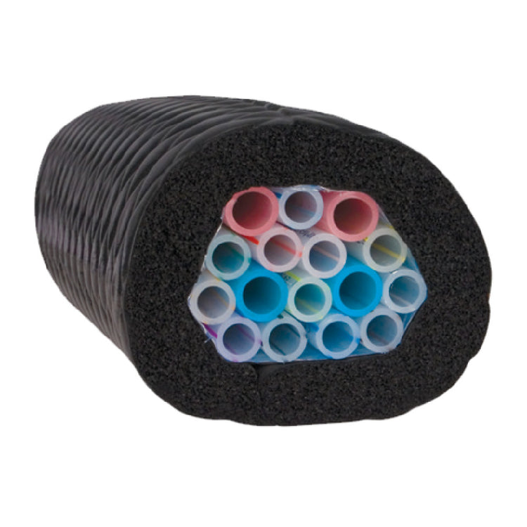 The Micro Matic CDI1254-BF Barriermaster Flavorlock Trunk Line is a highly specialized product engineered to optimize beverage dispensing systems. Featuring a 5/16" inner diameter, this trunk line is designed to accommodate 12 different products, making it an ideal solution for establishments with diverse beverage offerings. The inclusion of four glycol lines ensures efficient temperature control, crucial for maintaining the quality and flavor of beverages over extended distances. The color-coded tubing simplifies installation and product identification, minimizing the risk of cross-contamination and ensuring consistent beverage quality. Additionally, the aluminum foil cold transfer wrap enhances insulation and thermal efficiency, further ensuring the integrity of the beverages served. Certified by NSF, this product adheres to stringent public health and safety standards, making it a reliable choice for bars, restaurants, and other commercial establishments seeking to maintain high-quality beverage dispensing systems. With its combination of technical features and compliance with safety standards, the Micro Matic CDI1254-BF Barriermaster Flavorlock Trunk Line is a valuable addition to any professional beverage dispensing setup, offering robust performance and versatility for varied operational needs.
