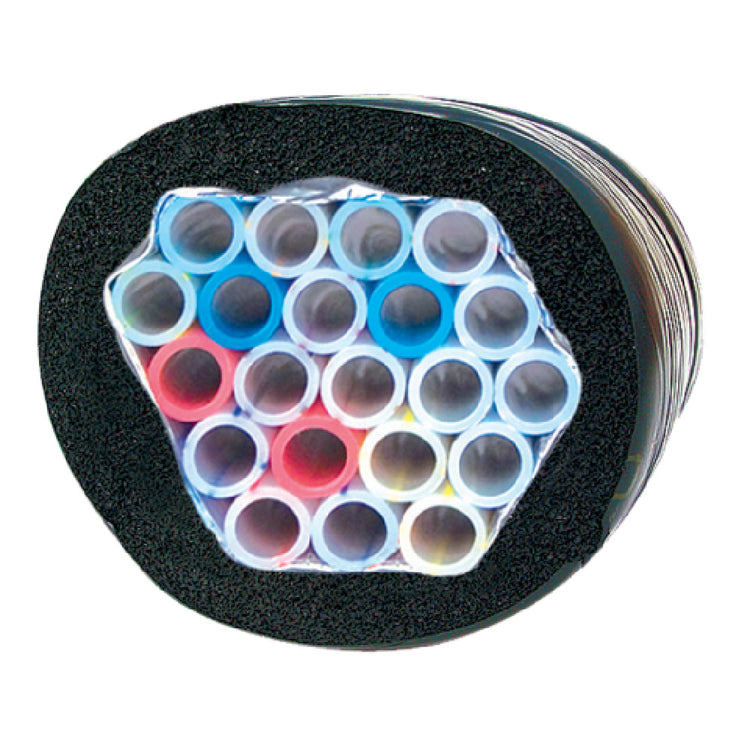 The Micro Matic CDI1634-BF Barriermaster Flavorlock Trunk Line is an advanced system designed to enhance beverage distribution efficiency, suitable for diverse market segments such as bars, restaurants, and breweries. This product features a 3/8" I.D. trunk line, capable of accommodating 16 different products, ensuring a wide variety of beverage options for consumers. Incorporated within the system are four glycol lines, providing consistent temperature control crucial for maintaining beverage quality from keg to tap. Each tubing is color-coded, facilitating easy identification and maintenance, thereby minimizing downtime and maximizing operational efficiency. The inclusion of an aluminum foil cold transfer wrap enhances thermal insulation, further ensuring that beverages are served at their optimal temperature. Certified by NSF, the Micro Matic CDI1634-BF meets rigorous health and safety standards, offering peace of mind to businesses in the hospitality industry. Its specification and construction underscore its role as a reliable and efficient solution for beverage management, making it an invaluable component for establishments aiming to deliver superior quality drinks. This trunk line system represents a blend of precision engineering and practical functionality, tailored to meet the demands of high-performance beverage service environments.