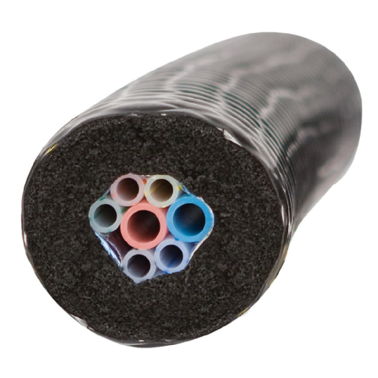 The Micro Matic CDI542-BF Barriermaster Flavorlock Trunk Line is engineered to provide optimal performance for beverage dispensing systems, specifically designed for operations requiring efficient and reliable liquid transport. Featuring a 1/4" I.D. size, this trunk line supports (5) products simultaneously, making it suitable for a variety of applications within the beverage industry. The inclusion of (2) glycol lines enhances its capacity to maintain precise temperature control, which is essential for preserving the integrity of the flavors being dispensed. This product is distinguished by its color-coded tubing, which aids in the easy identification of different lines, thus improving operational efficiency and reducing the risk of cross-contamination. An aluminum foil cold transfer wrap is integrated into the design, further ensuring excellent thermal performance and energy efficiency. This trunk line is NSF certified, demonstrating compliance with rigorous food safety standards, which is crucial for ensuring consumer safety and product quality. The Micro Matic CDI542-BF is an indispensable component for businesses aiming to deliver high-quality beverages with consistent temperature control, making it a valuable asset for bars, restaurants, and other beverage service establishments.