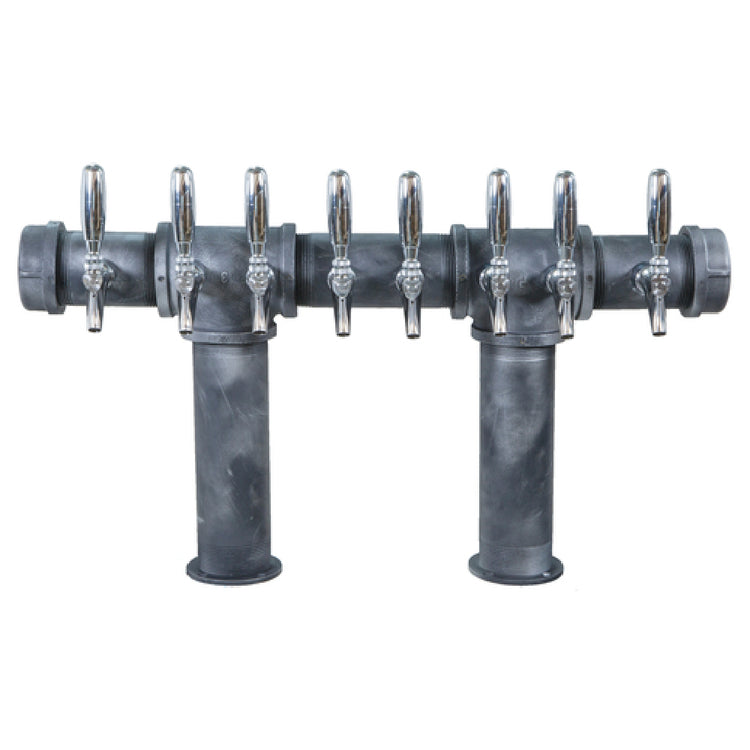 The Micro Matic CP-U-8 Cast Iron Pipe Tower with Cerakote Finish and 8 Faucets is a robust and versatile product designed for Pro-Line Units. This air-cooled tower is crafted from durable cast iron, ensuring long-term reliability and performance. The Cerakote finish not only adds a sleek, modern aesthetic but also provides enhanced resistance against corrosion, extending the lifespan of the tower. With eight faucets, this unit is ideal for establishments that require multiple dispensing options, making it a valuable asset for bars and restaurants aiming to maximize efficiency and service capabilities. The CP-U-8 is engineered for air-cooled systems, which ensures the beverages are maintained at optimal temperatures for premium taste and customer satisfaction. This product caters to various market segments within the beverage dispensing industry, providing a high-performance solution for both small and large-scale operations. Its sturdy construction and advanced design make it a preferred choice for industry professionals seeking reliable and efficient dispensing equipment. The Micro Matic CP-U-8 is an exemplary blend of functionality and durability, suited to meet the rigorous demands of commercial environments.